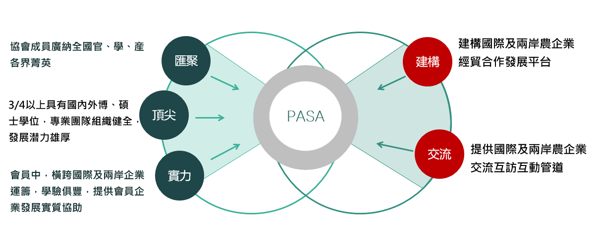 近年來,國際交流日益頻繁,農業開發合作經營亦漸趨熱絡;台灣農業技術及管理方面之優勢,在對中低度開發國家農業發展的進程中,仍有相當的施展空間。台灣農業技術及管理菁英,分在各階層為世界各地協助農民創利、農村繁榮自然生態保育及農業轉型戮力耕耘。惟急需團隊平台運作,方能‧‧‧
